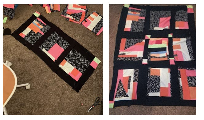 As of today I could smell coffee faintly. Today is the second day in a row where we have not needed a 10am nap. Yesterday we had enough energy to leave the house for a Michaels curbside pickup for some more quilting materials. I stayed awake past 8pm and worked on the quilt top I had tucked away at the beginning of this year. So we’re making progress!